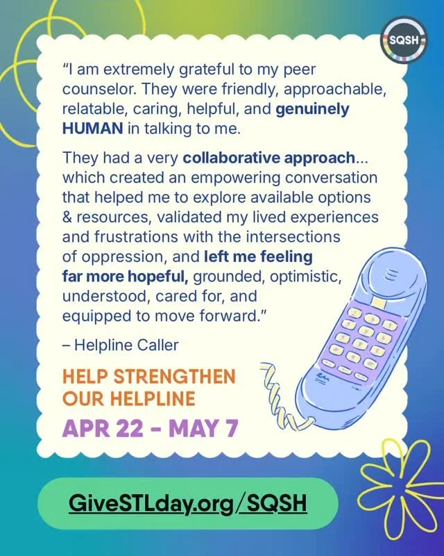 SQSH is a grassroots nonprofit that nurtures connection, healing, and empowerment within our St. Louis Metro Area’s LGBTQIA+ community.